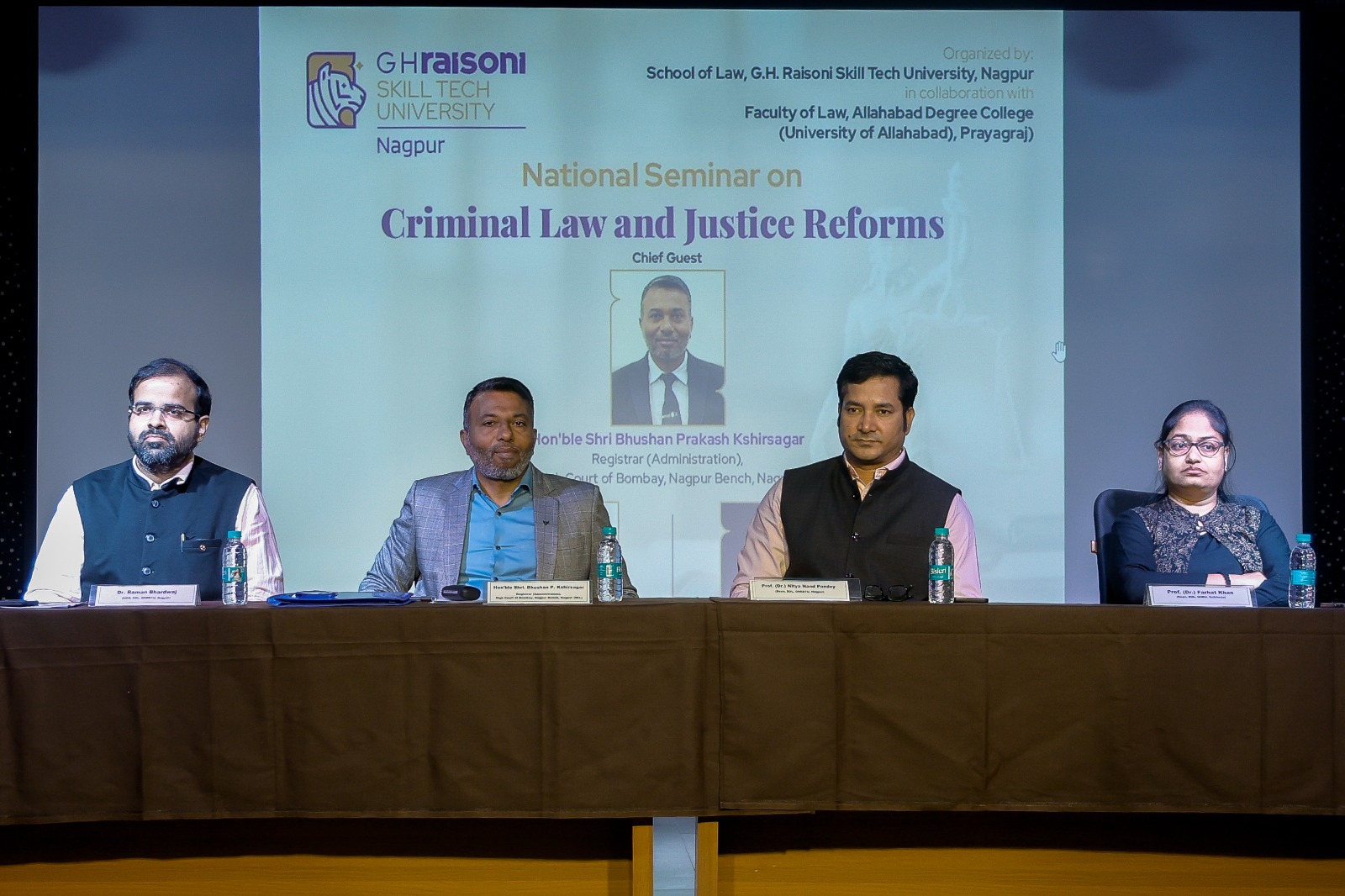 संयम भारत संवाददाता का.स.इलाहाबाद डिग्री कॉलेज (इलाहाबाद विश्वविद्यालय का एक घटक पीजी कॉलेज ), प्रयागराज के विधि संकाय ,और स्कूल ऑफ लॉ, जी एच रायसोनी स्किल टेक यूनिवर्सिटी नागपुर, महाराष्ट्र ने संयुक्त रूप से 8 नवंबर 2025* को हाइब्रिड मोड में एक दिवसीय आपराधिक कानून और न्याय सुधार पर राष्ट्रीय संगोष्ठी का आयोजन किया। सेमिनार में मुख्य अतिथि के रूप में भूषण प्रकाश क्षीरसागर, रजिस्ट्रार (प्रशासन), मुम्बई उच्च न्यायालय, नागपुर पीठ, नागपुर आमंत्रित थे | सेमिनार के अन्य गणमान्य अतिथि डॉ. नित्या नंद पांडेय , डीन,स्कूल ऑफ लॉ, जी एच रायसोनी स्किल टेक यूनिवर्सिटी नागपुर, प्रो. डॉ. अतुल कुमार सिंह, प्राचार्य, इलाहाबाद डिग्री कॉलेज,प्रो. डॉ. राहुल बिसारिया, पूर्व विभागाध्यक्ष, विधि संकाय, इलाहाबाद डिग्री कॉलेज, डॉ. नीलम सिंह, विभागाध्यक्ष, विधि संकाय, इलाहाबाद डिग्री कॉलेज एवं अन्य संकाय सदस्य उपस्थित थे।अपने संबोधन में मुख्य अतिथि ने प्रतिभागियों और छात्रो को नये आपराधिक कानून से अवगत कराया तथा अध्ययन की तकनिकी और अपने अनुभवों को साझा किया | भारत के विभिन्न विश्वविद्यालयो से आये कुल 65 लोगो ने भाग लिया था जिनमे लगभग 40 लोगो ने अपने शोध-पत्र प्रस्तुत किए | धन्यवाद ज्ञापन डॉ. मुक्ति जायसवाल, सहायक प्रोफेसर, इलाहाबाद डिग्री कॉलेज प्रयागराज ने किया|