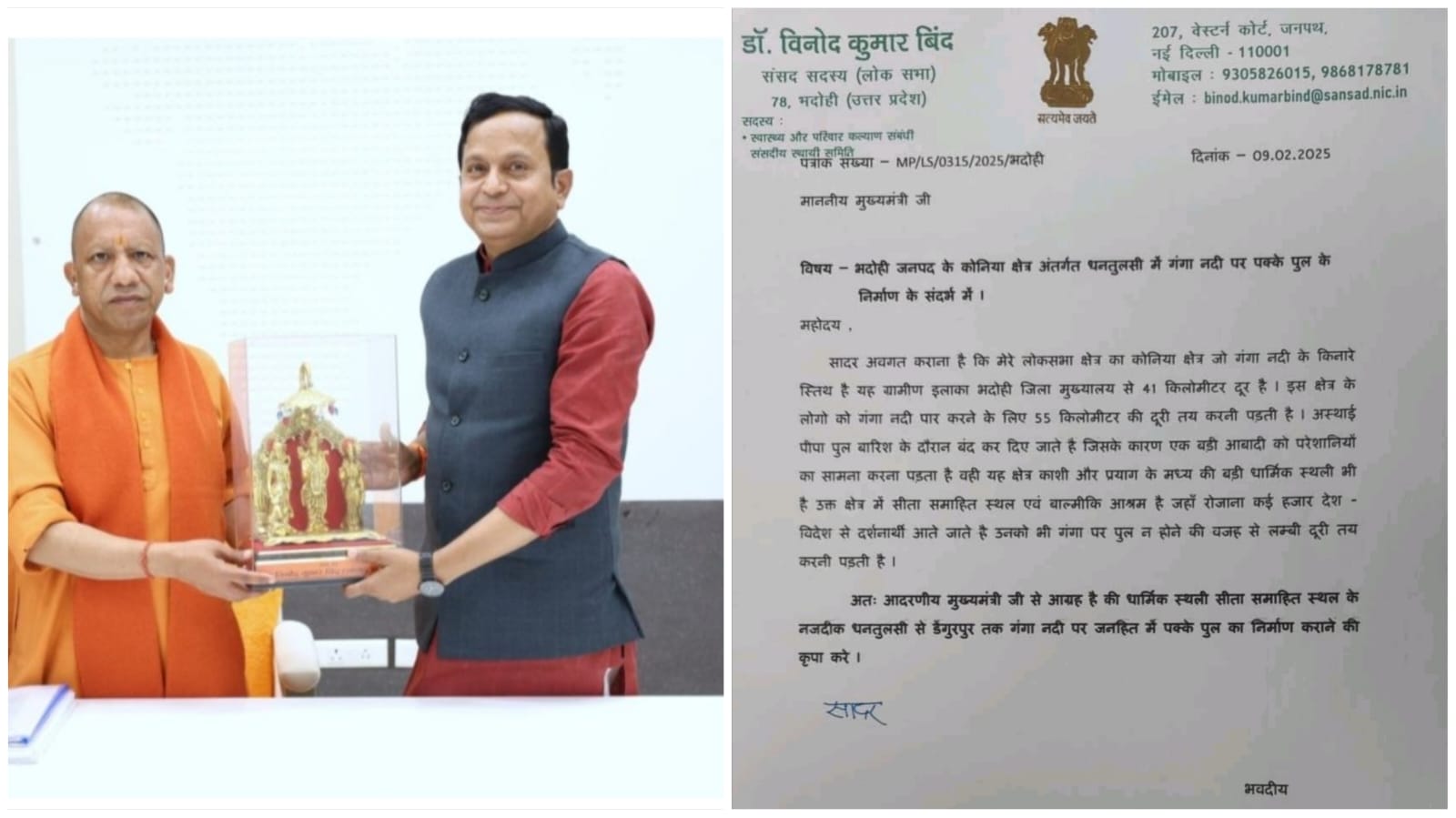 धनतुलसी डेंगुरपुर पक्के पुल के निर्माण के लिए भदोही सांसद ने मुख्यमंत्री से मुलाकात कर सौपा पत्र