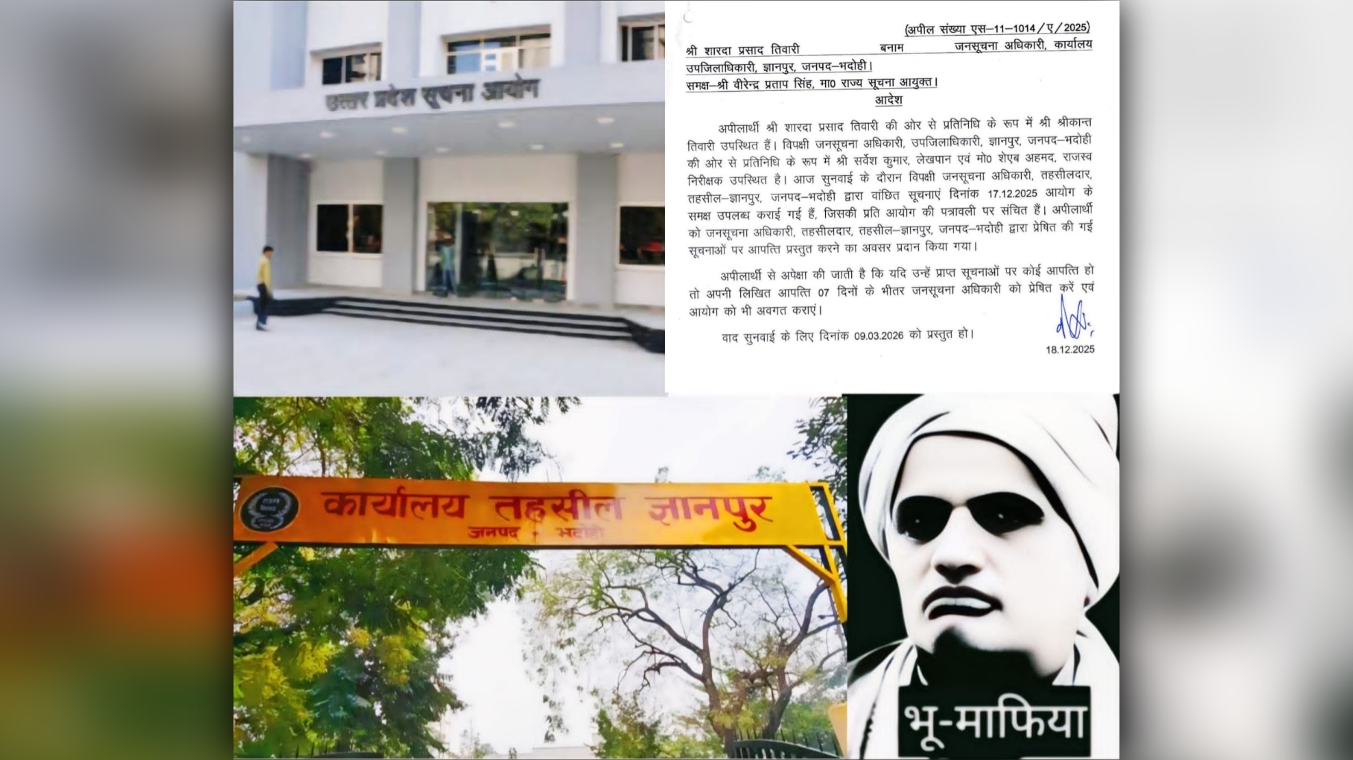 विशेष संवाददाता भदोही, संयम भारत, भदोही जनपद के ज्ञानपुर तहसील से जुड़ा एक गंभीर मामला सामने आया है, जहाँ राज्य सूचना आयोग ने उपजिलाधिकारी ज्ञानपुर के खिलाफ अर्थदंड अधिरोपित करने और जुर्माना लगाने की चेतावनी दी है। वहीं आयोग ने उपजिलाधिकारी ज्ञानपुर, भदोही के द्वारा दिया गया सूचना की आपत्ति देने के लिए अपील करता को स्पष्ट निर्देश दिया हैं और कहा कि अपील करता 7 दिनों के भीतर अपनी आपत्ती जन सूचना अधिकारी को भेजें एवं राज्य सूचना आयोग को भी अवगत कराए मांगी गई सूचना उपलब्ध कराई जाए, अन्यथा कड़ी कार्रवाई की जाएगी। इसके बावजूद अब तक सूचनाएँ रोके जाने से प्रशासनिक भूमिका पर सवाल खड़े हो रहे हैं।आरोप है कि कुख्यात भू-माफिया कमला शंकर मिश्रा के इशारे पर उपजिलाधिकारी ज्ञानपुर,भदोही जानबूझकर सूचना आयोग के आदेशों की अवहेलना कर रहे हैं। सूचना आयुक्त ने भू-माफिया द्वारा अवैध रूप से कब्जाई गई जमीनों पर संचालित कथित अवैध स्कूलों का पूरा विवरण मांगा था, लेकिन निर्धारित समय में जानकारी न दिए जाने से संदेह और गहरा गया है। यह स्थिति न केवल RTI कानून की अवमानना है, बल्कि भ्रष्टाचार को संरक्षण देने जैसी प्रतीत होती है।भदोही जनपद में भू-माफिया कमला शंकर मिश्रा का आतंक लगातार बढ़ता बताया जा रहा है। आरोप है कि वह अपने गुर्गों के माध्यम से किसानों और ग्राम सभा की जमीनों पर अवैध कब्जा कर रहा है। शिकायत करने वालों और उसके खिलाफ खबरें प्रकाशित करने वाले पत्रकारों को खुलेआम धमकियाँ दी जा रही हैं, जिससे आम नागरिकों और मीडिया कर्मियों में भय का माहौल है।इसी कड़ी में हाल ही में भदोही के धसकरी गांव में ग्राम प्रधान के खिलाफ भ्रष्टाचार की शिकायत करने वाले मेडिकल स्टोर संचालक कमलाकांत दुबे की आर्टिगा कार से कुचलकर हत्या ने पूरे प्रदेश को झकझोर दिया। पुलिस ने आरोपियों को गिरफ्तार कर जेल भेजा है, लेकिन सवाल यह है कि क्या ऐसे जघन्य अपराधों पर सिर्फ गिरफ्तारी ही पर्याप्त है, या दबंगों और माफियाओं पर सख्त बुलडोजर कार्रवाई भी होनी चाहिए।प्रदेश में योगी सरकार की कानून-व्यवस्था की सराहना होती है, लेकिन लगातार हो रही हत्याएँ और पत्रकारों पर हमले व्यवस्था की सच्चाई भी उजागर करते हैं। प्रयागराज, सीतापुर, लखनऊ और अब भदोही की घटनाएँ यह संकेत देती हैं कि भ्रष्टाचार और माफिया के खिलाफ आवाज उठाने वालों की सुरक्षा अब भी एक बड़ा सवाल बनी हुई है।अब सवाल यह है कि क्या प्रशासन और सरकार समय रहते सख्त कदम उठाएगी, या फिर माफिया और बाहुबलियों के हौसले यूँ ही बुलंद रहेंगे। आमजन और पत्रकारों की सुरक्षा, RTI कानून का सम्मान और भू-माफियाओं पर कठोर कार्रवाई ही इस भय के माहौल को खत्म कर सकती है।