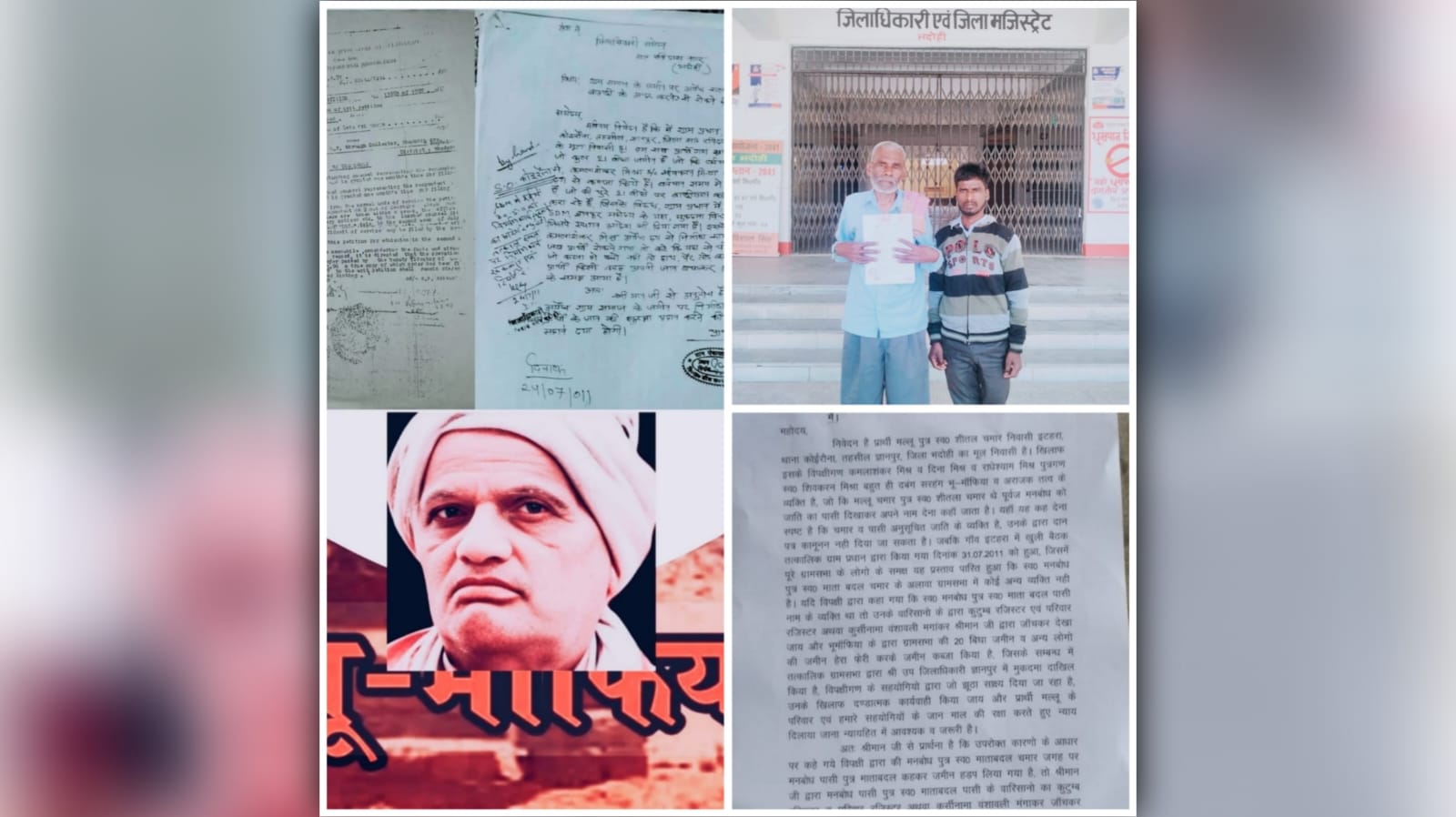 पीड़ित दलित दोनों आंख से दिव्यांग मंल्लू ने मुख्यमंत्री, डीएम, एसपी को शिकायती प्रार्थना पत्र भेज कर मांग किया कि है स्व० मनबोध चमार पुत्र स्व० माताबदल,एवं स्व० मनबोध पासी पुत्र स्व० माताबदल व स्व० गंगाराम चमार पुत्र स्व० मनबोध, स्व० गंगाराम पासी पुत्र स्व० मनबोध तथा स्व. शीतला चमार पुत्र स्व० गंगाराम,स्व. शीतला पासी पुत्र स्व० गंगाराम उपरोक्त दोनों परिवार के कुटुम्ब रजिस्टर, परिवार रजिस्टर, कुर्सीनामा, वंशावली सार्वजनिक किया जाए! यही हेरा फेरी करके भू-माफिया ने हड़प ली है मेरी जमीन?
