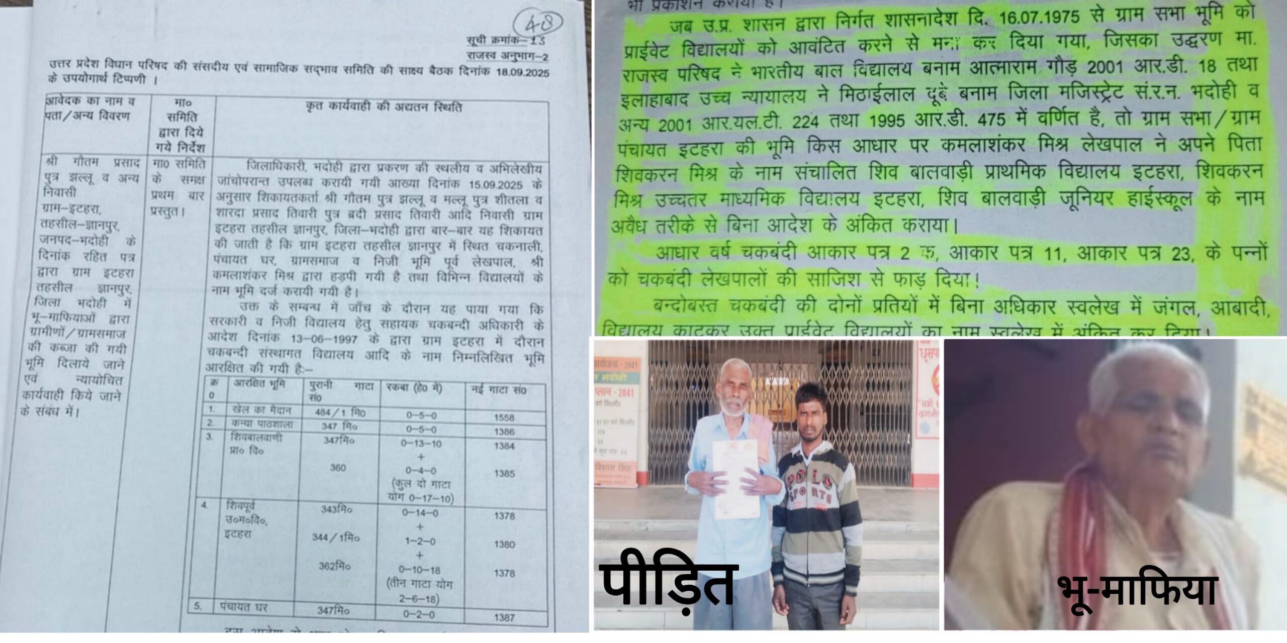जब उत्तर प्रदेश शासन ने दिनांक 16.7.1975 को शासनादेश निर्गत किया है कि सरकारी जमीन किसी प्राइवेट को नहीं दिया जाएगा!राजस्व परिषद उत्तर प्रदेश ने भी 2001 में सरकारी जमीन किसी प्राइवेट को देने से मना किया गया है!उच्च न्यायालय इलाहाबाद ने भी मिठाई लाल दुबे बनाम जिलाधिकारी भदोही के मुकदमे में सरकारी जमीन को प्राइवेट विद्यालयों को देने से मना किया है!किस आधार पर सहायक चकबंदी अधिकारी ज्ञानपुर भदोही ने हाई कोर्ट, राजस्व परिषद, शासनादेश से बड़ा होकर 13. 6. 19 97 को ग्राम सभा इटहरा की बीसों बीघा जमीन प्राइवेट व्यक्ति के विद्यालयों के नाम आरक्षित कर दिया है!