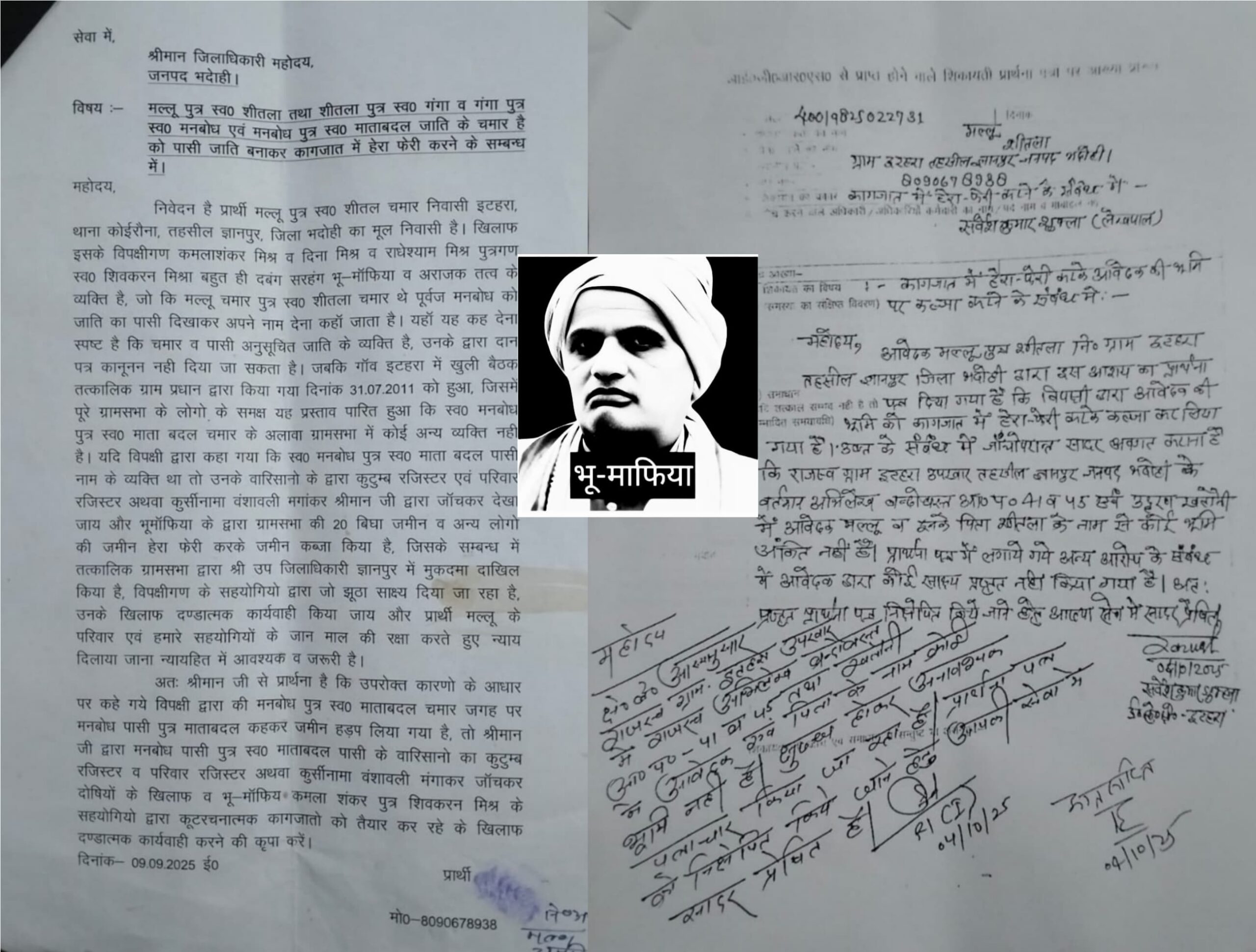 पीड़ित दलित दोनों आंख से दिव्यांग मंल्लू ने मुख्यमंत्री, डीएम, एसपी को शिकायती प्रार्थना पत्र भेज कर मांग किया कि है स्व० मनबोध चमार पुत्र स्व० माताबदल,एवं स्व० मनबोध पासी पुत्र स्व० माताबदल व स्व० गंगाराम चमार पुत्र स्व० मनबोध, स्व० गंगाराम पासी पुत्र स्व० मनबोध तथा स्व. शीतला चमार पुत्र स्व० गंगाराम,स्व. शीतला पासी पुत्र स्व० गंगाराम उपरोक्त दोनों परिवार के कुटुम्ब रजिस्टर, परिवार रजिस्टर, कुर्सीनामा, वंशावली सार्वजनिक किया जाए! यही हेरा फेरी करके भू-माफिया ने हड़प ली है मेरी जमीन?