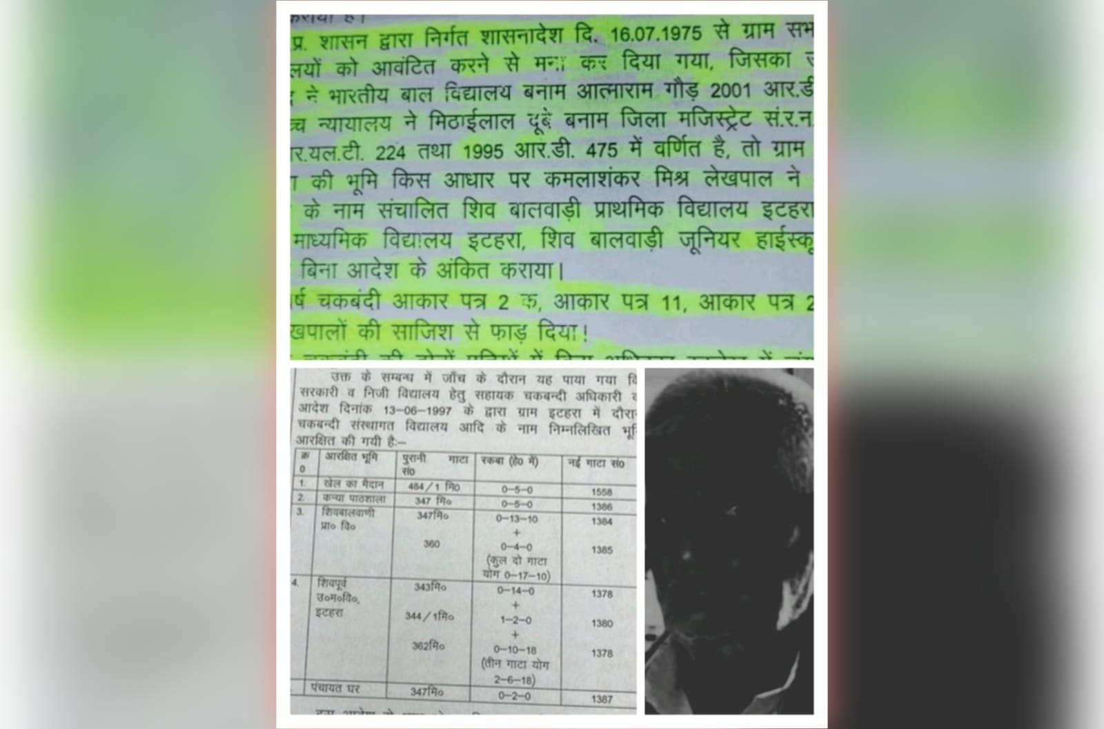 जब हाई कोर्ट,राजस्व परिषद, एवं उत्तर प्रदेश शासन ने ग्राम सभा की जमीन कीसी प्राइवेट व्यक्ति के विद्यालयों को देने से मना किया है तो सहायक चकबंदी अधिकारी कैसे भू-माफिया के नाम उसके परिवार के नाम उसके विद्यालय के नाम आरक्षित कर दिया है, भू-माफिया कमला शंकर मिश्रा का खेल आ गया सामने…..?
