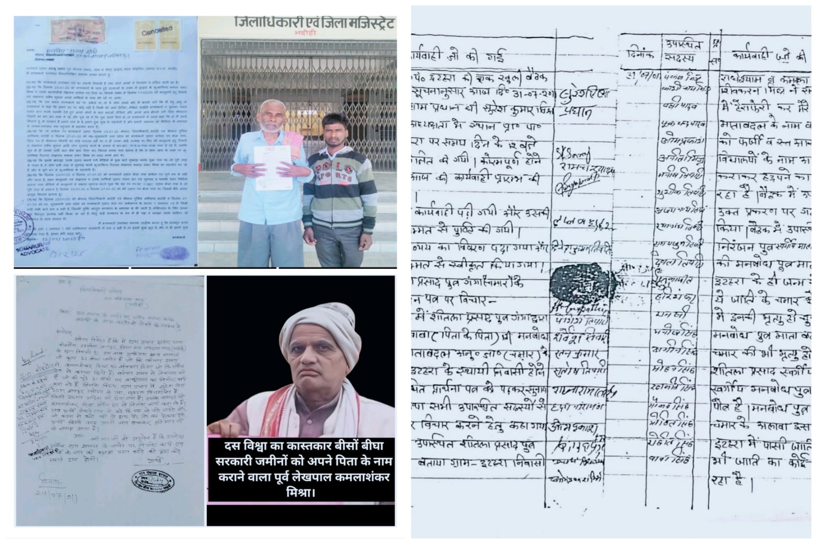इस मामले की जो अधिकारी जांच कर रहे हैं। उनके बारे में पता चला है कि जिन काश्तकारों की जमीन के कागजातों में हेरा फेरी करते हुए उनकी जमीन माफियाओं को दे दी गई। इटहरा का भू माफिया और इसके सहयोगी लेखपाल, कानूनगो मिलकर ज्ञानपुर तहसील के समानांतर प्रशासन चला रहा है। दलित दिव्यांगों की जमीन पर अवैध कब्जा कर लिया है। गरीबों की जमीन छीन ली जा रही है। जमीने फर्जी दस्तावेजों के जरिए इधर से उधर की जा रही है। इन सब मामलों को दबाने के लिए बड़े पैमाने पर यह लोग साजिश रच रहे हैं।