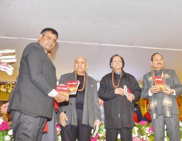 मुख्य न्यायाधीश सूर्यकांत के कर-कमलों से ‘सुख दर्शिका’ का भव्य लोकार्पणसंयम भारत संवाददाता व्यूरो,इटावा।‘हिंदी गौरव’ न्यायमूर्ति स्वर्गीय प्रेम शंकर गुप्त द्वारा स्थापित इटावा हिंदी सेवा निधि के तैंतीसवें वार्षिक अधिवेशन (सारस्वत समारोह) का भव्य आयोजन शनिवार, 20 दिसंबर 2025 को इस्लामिया इंटर कॉलेज प्रांगण, इटावा में सफलतापूर्वक संपन्न हुआ। समारोह का आयोजन न्यास के महासचिव प्रदीप कुमार के कुशल नेतृत्व में किया गया। कार्यक्रम के मुख्य अतिथि न्यायमूर्ति सूर्यकांत,मुख्य न्यायाधीश, सर्वोच्च न्यायालय, भारत रहे। समारोह की अध्यक्षता राष्ट्र गौरव अध्यक्ष जनाब वसीम ‘बरेलवी’ ने की। इस अवसर पर सर्वोच्च न्यायालय एवं उच्च न्यायालय के अनेक न्यायमूर्ति गण, हिंदी जगत के प्रतिष्ठित विद्वान, अन्य भारतीय भाषाओं के मनीषी एवं देशभर से आए विशिष्ट अतिथि उपस्थित रहे।समारोह में हिंदी भाषा के प्रसार, साहित्य साधना तथा विभिन्न क्षेत्रों में राष्ट्र सेवा को समर्पित महानुभावों को सम्मानित किया गया। साथ ही अनेक महत्वपूर्ण पुस्तकों का विमोचन भी किया गया।इसी क्रम में प्रयागराज के फिजियोथैरेपिस्ट डॉ. यशवंत कुमार पी.टी. ( भौतिक चिकित्सक ) द्वारा रचित पुस्तक सुख दर्शिका” काव्य संकलन का भव्य लोकार्पण मुख्य न्यायाधीश सर्वोच्च न्यायालय सूर्यकांत के कर-कमलों से किया गया।कार्यक्रम के द्वितीय सत्र (काव्य पाठ) की अध्यक्षता हिंदी अनुरागी न्यायमूर्ति बृजराज सिंह ने की, जिसमें कवियों एवं साहित्यकारों ने अपनी ओजस्वी एवं भावपूर्ण रचनाओं से श्रोताओं को मंत्रमुग्ध कर दिया।समारोह ने हिंदी भाषा, साहित्य और संस्कृति के उत्थान के साथ-साथ सामाजिक चेतना और राष्ट्रसेवा के मूल्यों को भी सशक्त रूप से प्रस्तुत किया।