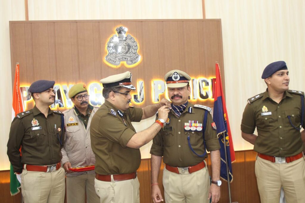 डॉ राजीव नारायण मिश्र बनें डीआईजी पुलिस आयुक्त कमिश्नरेट प्रयागराज ने बैज लगाकर दी बधाई।