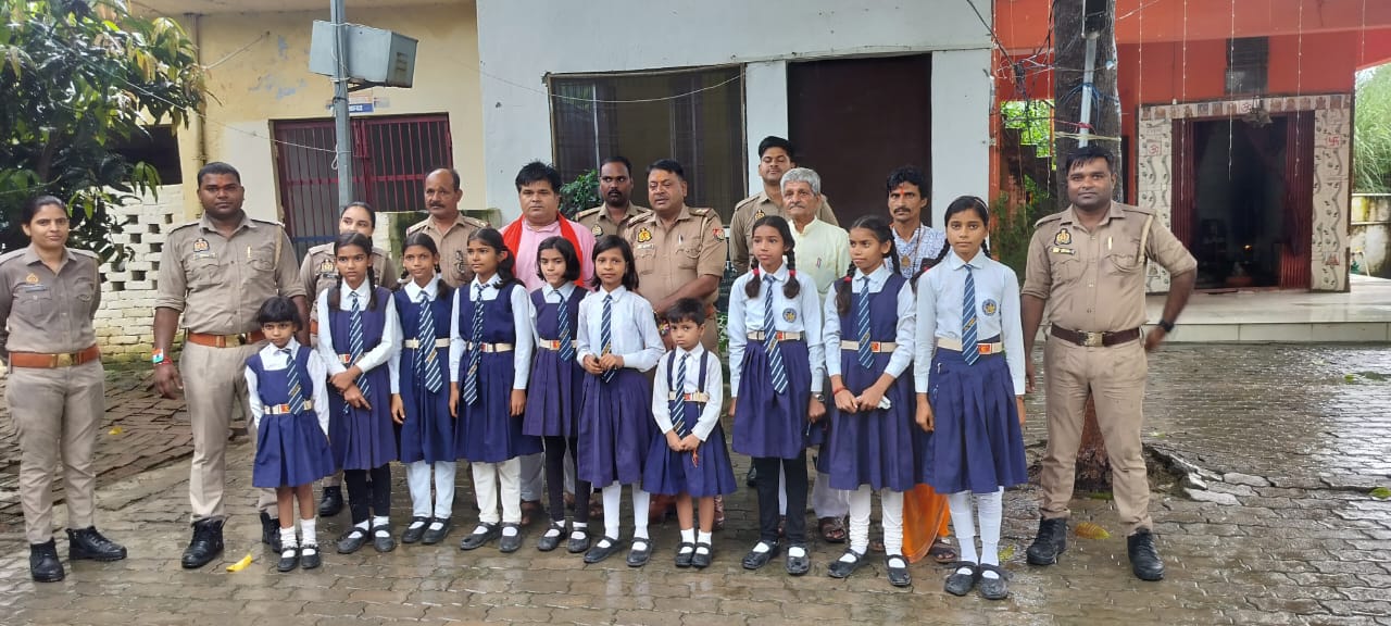 कार्यक्रम में नन्हे-मुन्ने बच्चों ने स्थानीय थाना इंचार्ज धीरेंद्र सिंह व उनके साथ अन्य पुलिसकर्मियों की कलाई पर राखी बाँधी और मिठाई खिलाकर उनके अच्छे स्वास्थ्य और दीर्घायु की कामना की। बच्चों की मासूम मुस्कान और स्नेह से अभिभूत होकर थाना इंचार्ज ने भी उन्हें वचन दिया कि वे सदैव उनकी सुरक्षा के लिए तत्पर रहेंगे।