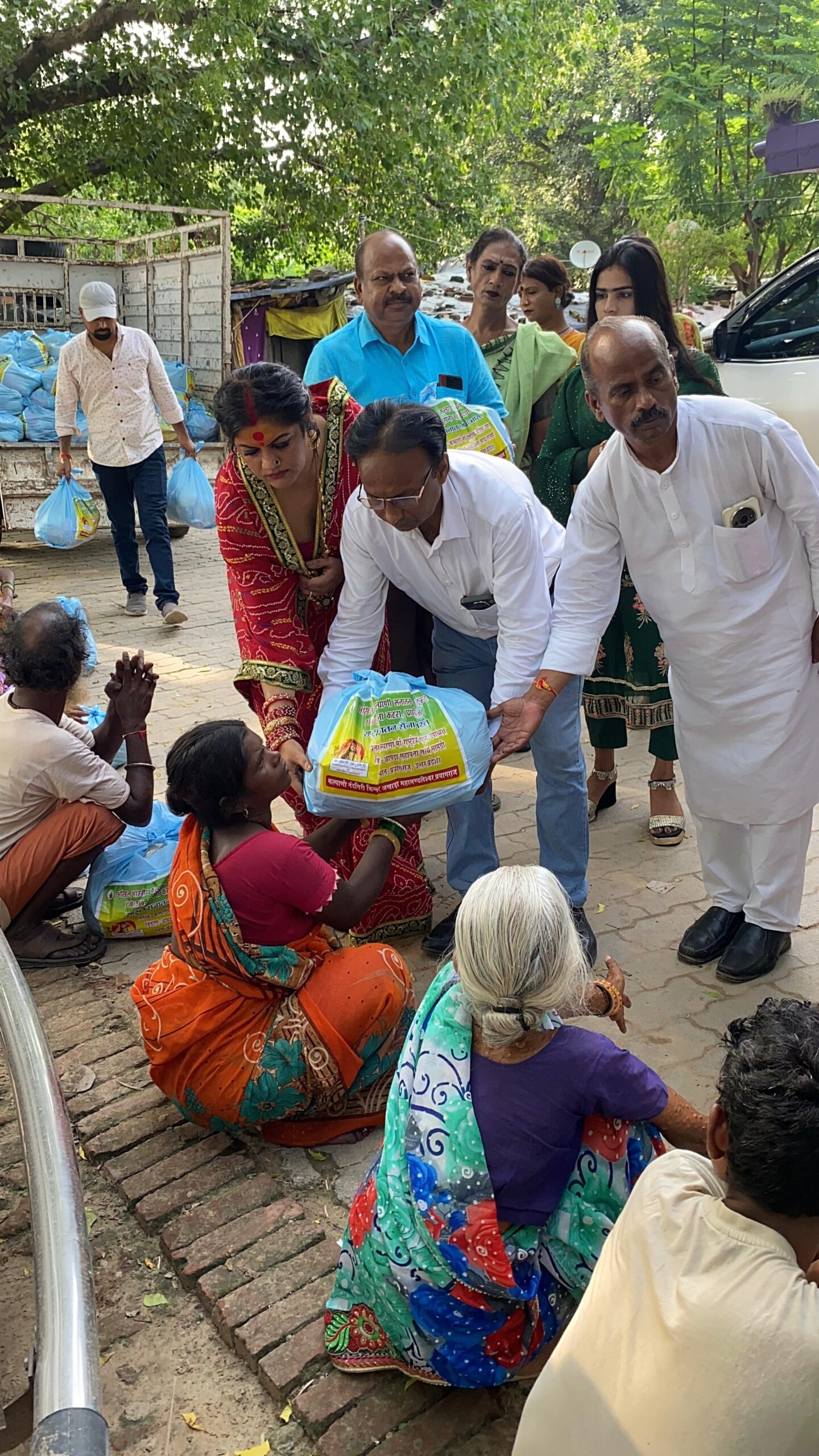 अखिल भारतीय सनातन सेवा ट्रस्ट एवं किन्नर अखाड़ा ने बाढ़ पीड़ितों को दी राहत सामग्री