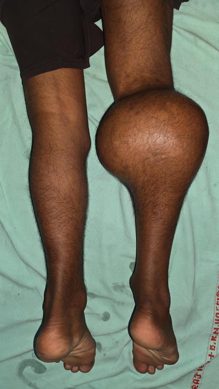 मरीज सुनील कुमार, निवासी कोरांव (प्रयागराज), वर्ष 2011 से दाहिने पैर में गांठ से परेशान थे। यह गांठ धीरे-धीरे बढ़ती गई और इतना बड़ा आकार ले लिया कि वे चलने-फिरने में असमर्थ हो गए। आर्थिक स्थिति कमजोर होने के कारण वे वर्षों तक इलाज नहीं करा सके। हाल ही में वे एसआरएन अस्पताल पहुंचे, जहां एमआरआई, सीटी स्कैन और बायोप्सी के बाद पता चला कि यह बिनाइन ट्यूमर नसों पर दबाव डाल रहा है। डॉक्टरों ने तत्काल सर्जरी का निर्णय लिया।