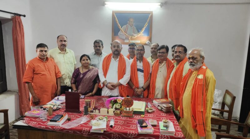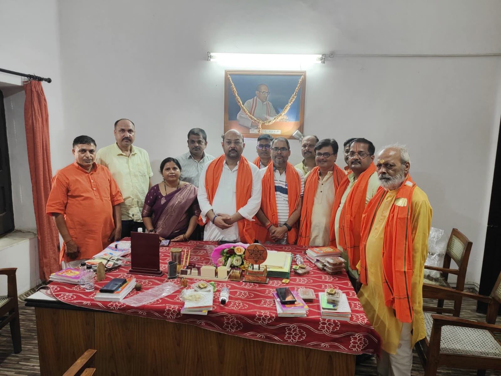अनुराग तिवारी/संयम भारत, प्रयागराज।विश्व हिन्दू महासंघ गोरक्षा प्रकोष्ठ के प्रदेश अध्यक्ष प्रवीण दुबे आज अचानक प्रयागराज पहुँच कर हिन्दी साहित्य सम्मेलन के प्रधानमंत्री कुन्तक मिश्रा से शिष्टाचार भेंट की, उनका स्वागत विश्व हिन्दू महासंघ उत्तर प्रदेश के प्रदेश उपाध्यक्ष राम प्रसाद यादव, गोरक्षा प्रकोष्ठ के वरिष्ठ प्रदेश उपाध्यक्ष श्री सुशील पाण्डेय, जिलाध्यक्ष श्री सर्वेश शर्मा आदि ने किया, इसी के मध्य समाचार पत्र को अपने एक अल्प साक्षात्कार में प्रवीण दुबे ने कहा कि उत्तर प्रदेश में योगी आदित्य नाथ महाराज की सरकार उपरोक्त दिशा में प्रशंसनीय कार्य कर रही है किन्तु अभी भी जनजागरुकता की आवश्यकता है जिसे हमारा संगठन निरन्तर प्रयत्न कर रहा है, महासंघ के प्रदेश उपाध्यक्ष राम प्रसाद यादव तथा गोरक्षा प्रकोष्ठ के वरिष्ठ प्रदेश उपाध्यक्ष सुशील पाण्डेय ने कहा कि सरकार गोपालन के लिए सहायता भी कर रही है , गाय के गोबर से जैविक खेती, दूध के अतिरिक्त उसके गोबर आदि से विभिन्न प्रकार के सामान बनाकर उससे अच्छा व्यवसाय करके गरीबी दूर की जा सकती है। इस अवसर पर मुख्य रूप से सर्वश्री आदि ने भी गाय की उपयोगिता से सम्बन्धित अनेक बातें बताई जो समय की आवश्यकता है,
